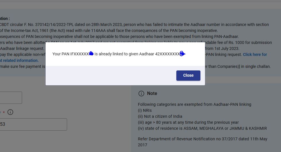 लिंकिंग सफल होने का मैसेज स्क्रीन पर दिखेगा